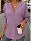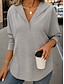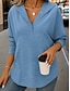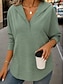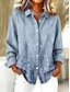 Dame Bluse Helfarge Stilfull Fritid Langermet V-hals Vanlige topper Daglig Knapper Rosa Vin Navyblå Grønn Beige Vår Høst