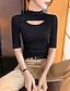 Dame T skjorte Burgund t-skjorte Dressy topper عادي Grunnleggende Kortermet V-hals Vanlige topper Daglig Helg Utskjæring Svart Vin Navyblå Himmelblå Lilla Sommer Vår Høst