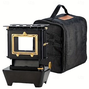 1 stk. vedgrill campingovn utendørs piknik grill reise bærbar støpejern vedovn svart