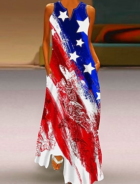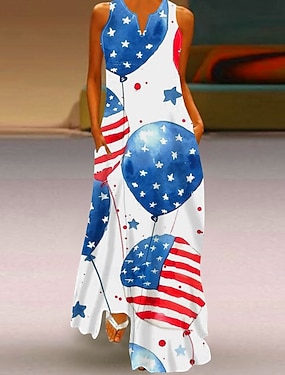 Dame Maxi Kjole Korsett Kjole A-Linje Kjole Sommerkjole Fest Bursdag Ferie Daglig Vanlig Passform Grafisk Lang Erme V-Hals Champagne Rød Blå Regnbue Sommer