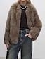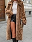 Dame Frakk Fuskepels Hold Varm Bekvem Knapper Åpen Forside Pels og lær Fritid Leopard Feriereise Gate Avslappet Dagligdagstøy Lang Aftæpning Normal Langermet Yttertøy Kamel Brun Kakifarget Høst Vinter