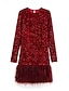 Jul Dame Mini kjole Tubekjole Fritid Fest Bryllupsgjest Cocktailfest Normal عادي Langermet Crew-hals Svart Vin Høst Vinter