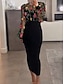 Dame Svart Sommer Vår Maxikjole Tubekjole Fest Formelt Formell Normal Blomstret Crew-hals