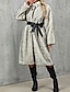 Dame Frakk Fuskepels Hold Varm Bekvem Med belte Pels og lær Elegant Fritid عادي Feriereise Gate Avslappet Dagligdagstøy Lang Høy krage Normal Langermet Yttertøy Svart Lysegrå Høst Vinter