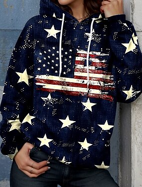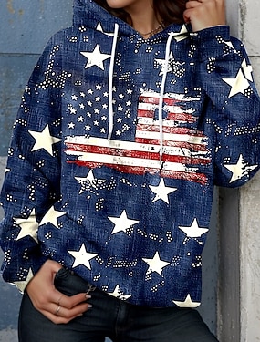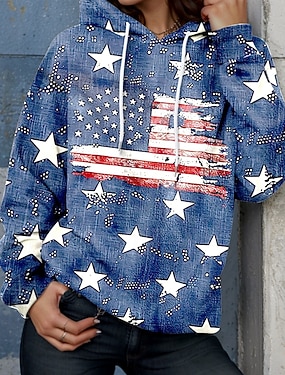 Amerikansk uavhengighetsdag Dame Skjorte Sateng skjorte Skjorte med knapp ned Uformell skjorte Trykt mønster Grafisk Flagg Årgang Stilfull Klassisk Langermet Skjortekrage Vanlige topper Daglig Ferie