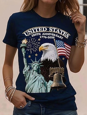 Uavhengighetsdagen Amerikansk jubileum Patriotisk Dame T-skjorte Grafikk Vintage Mote Stilfull Lange Ermer Rund Hals Daglig Helge Trykk Blå Svart Rød Grønn Sommer Vår