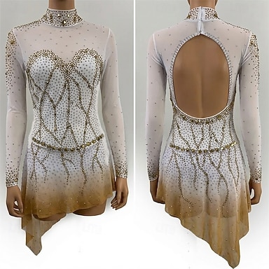 Kjole til kunstløp Dame Jente Skøyteløp Kjoler Gull Lapper Åben Ryg Netting Høy Elastisitet Trening Konkurranse Skøyteklær Klassisk Krystall / Rhinstein Langermet Skøyting Kunstløp