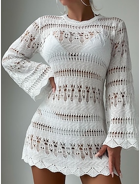 Kvinners cover-up badedrakt kjole cut out feriebadetøy ensfarget rund hals lange ermer badedrakter