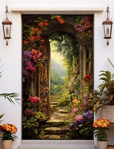 3d blomster dørdeksler veggmaleri dekor dør billedvev dør gardin dekorasjon bakgrunn dør banner avtakbar for inngangsdør innendørs utendørs hjemme rom dekorasjon gårdshus dekor forsyninger