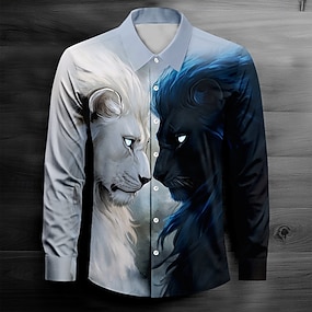 Herre Tiger Kroner og tiaraer Skjorte med knapper Langermet Fashion Casual Festkveldsklær Gate Daglig Høst Vinter Vår sommer Skjortekrage Knepp opp 3D-utskrift Hvit