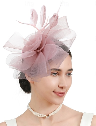 Elegant Fjær Nett Fascinatorer Hatter med Fjær Pels Blomster 1PC Spesiell Anledning Kentucky Hesteløp Damers Dag Hodepryd å imponere Race Day Dress