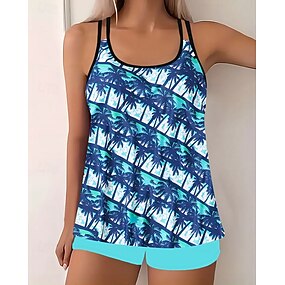 Kvinners Tankini 2 Delt Badedrakt Palm Boy Leg Magekontroll Høy Midje Slim Ryggløs Ferie Strandtøy Blader Scoop Hals Uten Ermer Badedrakter
