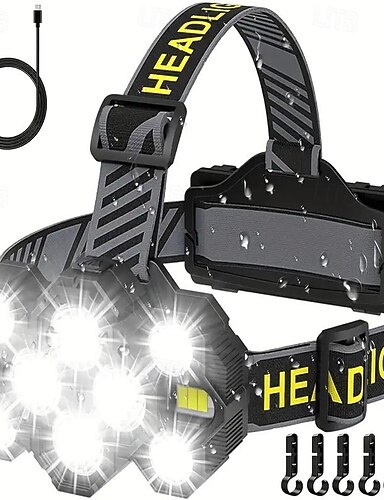 oppladbar hodelykt lommelykt 10 lysdioder super lyse hodelykter 22000 lumen 10 moduser ipx4 hodelykt hender rangerer hands-free kapasitet ideell for camping sykling