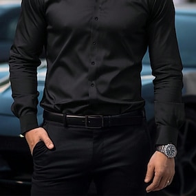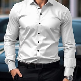 Herre Fargeblokk Langermet Aftæpning Forretning Arbeid Arbeidsklær Ut på byen Knapper Trykt mønster