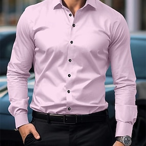 Herre Rose Langermet Aftæpning Forretning Arbeid Arbeidsklær Ut på byen Knapper Trykt mønster Multi lomme