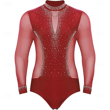 menn skinnende strass v-hals lange ermer latin danseskjorte kunstløp dansetrøye bodysuit kostyme