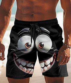 Herre 3D-tegneseriefigur Smilefjes Store øyne Badeshorts Surfeshorts Medium Midje Morsom utendørs Feriereise Hverdag Sidelommer Mesh fôr Elastisk snøring i midjen Designer Klær