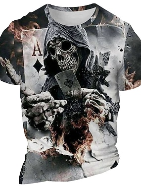 Herre Grafisk Mannen med ljåen' Gotisk T skjorte Kortermet T skjorte 3D-utskrift Crew-hals Skjorte Daglig Designer Retro / vintage Sport & Utendørs Ferie Ut på byen Blå Lilla Brun Vår sommer Klær S M