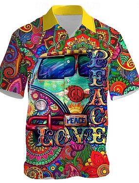 Herre Hippie buss Skjorte Hawaii skjorte Aloha skjorte Kortermet Skjorte Aftæpning Ferie Hawaiisk utendørs Feriereise Hawaiisk Gul Blå Fuksia S M L