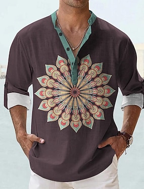 Herre Blomstret Henly-skjorte Langermet 3D-utskrift Etnisk Stamme Avslappet Ferie Vinter Vår & Vinter Svart Henley Henley T-skjorte