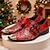 Herresko i rød ekte skinn med munkestropper, paisley-trykk og metalltåhette, formelle festsko i 100 % kuskinn for scene- og kveldsmote