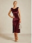 Dame Midikjole Havfruekjole Elegant Fest Bryllupsgjest Cocktailfest Normal Helfarge Ermeløs Cowl-hals Vin Vår Høst Vinter