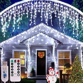 4M 96Leds Utendørs Solcelle Isbar Lyskjede Gårdsplass Takutstikk Balkong Gjerde Trapp Bryllup Festlig Atmosfære Dekorativt Lyskjede