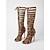 Knehøye støvletter med slangeskinnsmønster til dame, spiss tå og kitten heel-støvletter for avslappet stil og kveldsstil