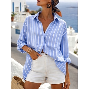Dame Bluse Knapper Trykt mønster Stripet Elegant Stilfull Fritid Langermet Skjortekrage Vanlige topper Daglig Blå Sommer Vår Høst
