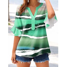 Dame Bluse Trykt mønster Grafisk Stripet Bohem Årgang Daglig 3/4 ermer V-hals Vanlige topper Daglig Ferie Ferieklær Blå Gul Lilla Grønn Sommer Vår Høst