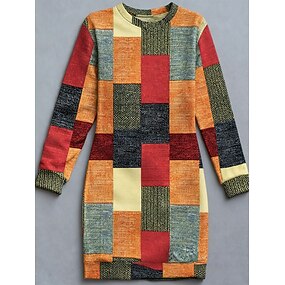 Dame Mini kjole Skiftkjole Genserkjole Fest Fritid Bohem Hjem utendørs Skole Normal Blomstret Grafisk Geometrisk Langermet Crew-hals Lilla Oransje Grønn Vår Høst Vinter