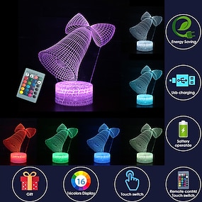 3d julenattlys jingle bells lys julegave batteridrevet (ikke inkludert) nattbordslampe til soverom skrivebordslampe peis bordpynt hjemme julepynt og gave til barn