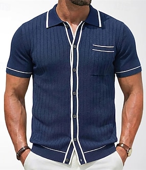 Herre Skjorte Ribbestrikket Konsistens Uformell skjorte Skjorte med knapper Rosa Navyblå Grønn Kortermet عادي Stripet Skjortekrage Avslappet Daglig Lomme foran Klær Elegant Mote Fritid