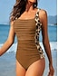 Dame Badetøy Ett stykke Monokini Underbukser Badedrakt Midjekontroll Høy Midje Åpen rygg Ferie Strand Klær Grafisk Stripet U-hals Ermeløs Badedrakter