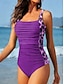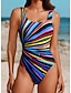 Kvinners Én-delt badetøy slankende fargeblokk truser strandklær sommer grafisk stripet U-hals ermeløs badetøy