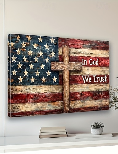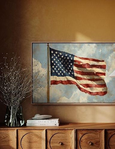 Vintage Amerikansk Flag Canvas Kunst - 250 År Patriotisk Veggdekor med Stjerner Striper Ramme Løs Canvas Maleri Stue Soverom Kontor Bar Kafe