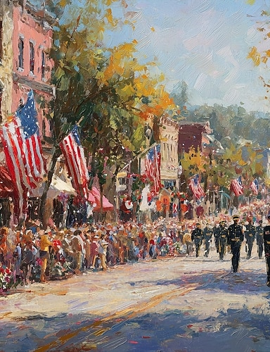 patriotisk veggkunst digitalt oljemaleri, vintage USA parade scene