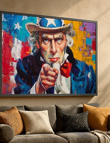 Patriotisk Onkel Sam Lerretsvegg Kunst Fargerik Amerikansk Flagg Maleri Pekefinger Dekor Moderne Americana Lerret