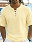 Herre Linskjorte Poloskjorter Avslappet Feriereise Krageløs Kortermet Ferie Moderne عادي Fargeblokk Knapper Sommer Vår Blå Hvit Gul Rød Grå Linskjorte