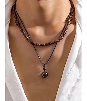 boho lagdelt kjede for menn med treperler og anheng – stammeinspirert dobbelttrådet kjede for uformell stil og strandklær