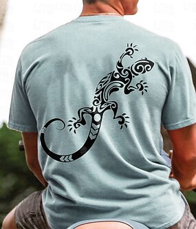 Herre Tropisk Øgle T skjorte Kortermet T skjorte 3D-utskrift Crew-hals Skjorte Ferie Mote Gate Lyseblå Hvit Rosa Sommer Vår Klær S M L XL XXL XXXL