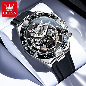 Den Nye Olevs Silikon Herre Forretningsklokke Med Luminous Kalender Og Månefase Display En Multifunksjonell Fullautomatisk Mekanisk Klokke Er En Mote Uformell Vannbestandig Sports Klokke