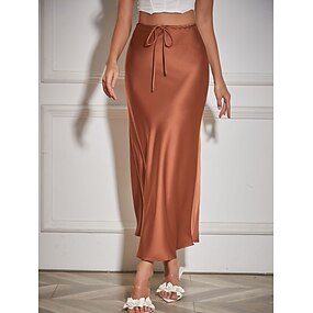 Dame Satengskjørt Elegant Mote Maksi Høy Midje Skjørt عادي Snorer Mikroelastisk Fest Stevnemøte Svart Navyblå Lysebrun Brun Sommer Sateng Polyester