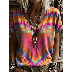 Dame T skjorte Trykt mønster Nyanse Blomstret Grafisk Årgang Stilfull Klassisk Kortermet V-hals Vanlige topper Daglig Helg Blå Gul Grønn Regnbue Sommer Vår