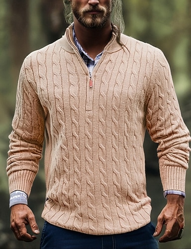 Herre Pullover genser Gensere med kvart glidelås Strikket genser Riflet Strikke Vanlige topper Strikket عادي Halv glidelås Mote Fritid Feriereise Dagligdagstøy Klær Høst Vinter Kamel Svart S M L