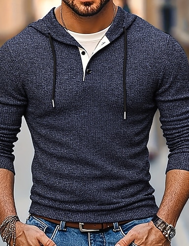 Herre Genser Strikket genser Riflet Strikke Vanlige topper Knapper Strikket عادي Med hette Mote Gatemote Avslappet Dagligdagstøy Klær Høst Vinter Navyblå S M L
