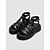 Svarte gladiatorsandaler til dame med platå – justerbar stropp i romersk stil, lett kilesåle, komfortable sommersko for turgåing og reiser &daglig bruk