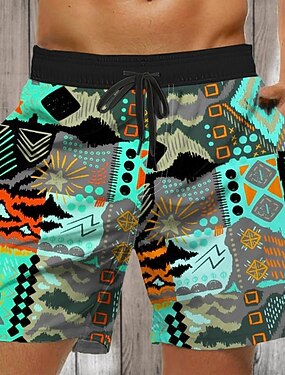 Herre Geometrisk mønster Etnisk Badeshorts Surfeshorts Medium Midje Gatemote Hawaiisk Avslappet Daglig Ferie Lomme Snorer Elastisk midje Designer Klær