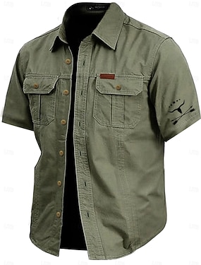 Herre Bokstaver Western skjorte Cowboyskjorte Langermet Årgang vestlig stil Stamme utendørs Feriereise Hesteløp Vår sommer Aftæpning Trykt mønster Knapp ned Kakifarget
