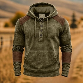 Herre Hattetrøje Genser med hette for genser Hettegenser med knapp Hettegenser i fleece Brun Grønn Med hette عادي Lapper Fargeblokk Sport & Utendørs Avslappet Daglig Polyester Årgang Gatemote